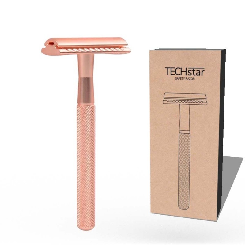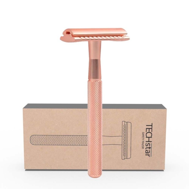 Aparat de ras Classic Safety Razor Techstar® SR1, Aliaj de Zinc, Cu Lame De Rezerva, Reutilizabil, Ecologic, Rose Gold, Alte categorii