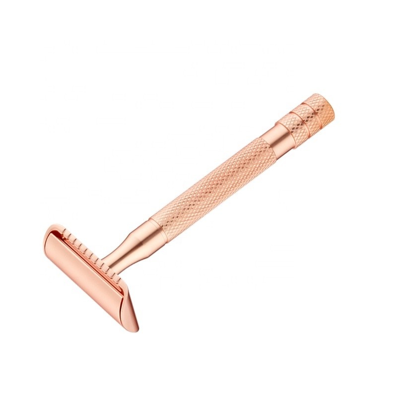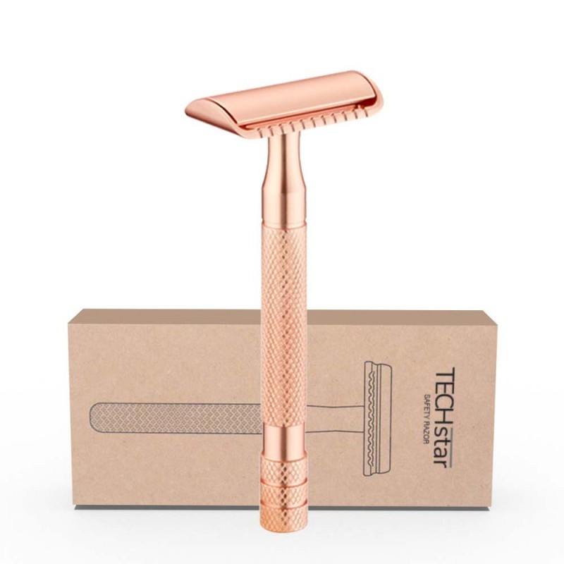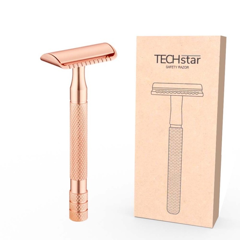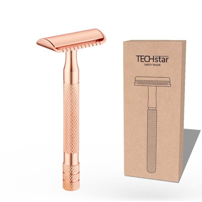 Aparat de ras Classic Safety Razor Techstar® SR2, Aliaj de Zinc, Cu Lame De Rezerva, Reutilizabil, Ecologic, Rose Gold, Alte categorii