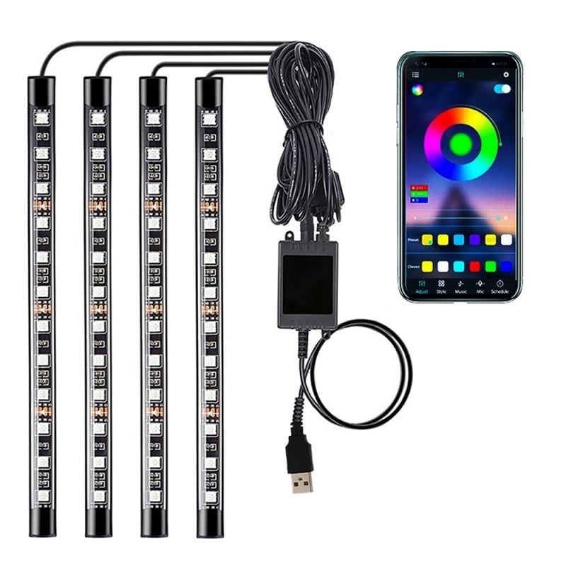 Benzi Led Auto Techstar®, MultiColore, RGB, 12 Leduri x 4 Benzi, Control Aplicatie, Bluetooth, Android, Accesorii tuning auto