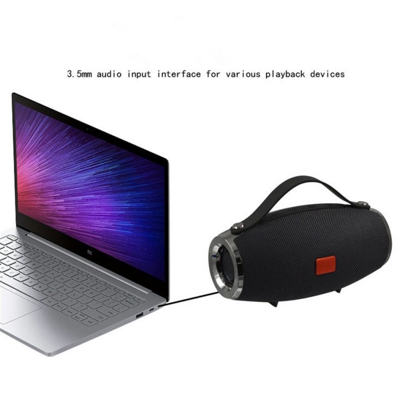 Caracteristici: Suporta multiple moduri playback precum: BT Mode, TF Micro Sd Card, AUX IN, U Disk. Difuzoare duale de 10W fiecare ce asigura un sunet socant de clar. Display LED ce arata modurile de playback. Excelenta pentru a fi folosita in situatii precum exercitii, sport, calatorii etc… Aspect material din plastic, turnare perfecta, textura de calitate inalta si design modern Poate transmite de pana la o distanta de 10 metri Specificatii: Model: E16 BT Version: V4.0 BT Distanta: ≤10M Capacitate baterie: 2400 mAh Putere W: 5Ω – 2x10W Distortion: ≤1% Frequency Range: 150Hz-18KHz Sensitivity: ≥95dB Signal to noise ratio: ≥75dB Support Audio Format: MP3/WMA/WMV Support Playback Modes: BT/AUX/TF Card/FM (88-102MHz) Timp de Redare: 5-10 Ore (Depinde de volum ) Material: ABS Marime Produs: 160x83x83mm Greutate Produs: aprox 700 Culoare: Negru Pachetul contine 1 * Boxa 1 * Cablu USB