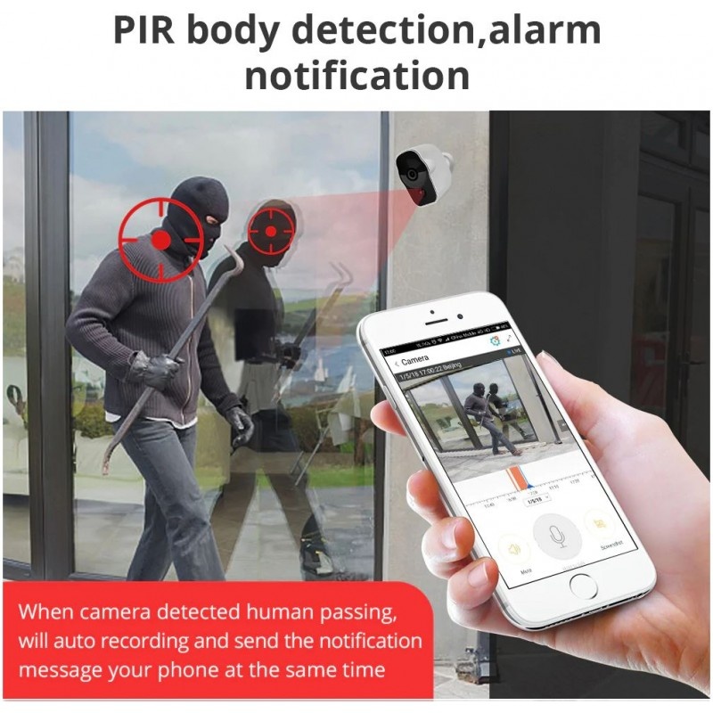 - Detecție PIR: Senzorul de mișcare PIR minimizează alarmele false, asigurându-se că veți fi alertat doar în cazul unor mișcări reale.