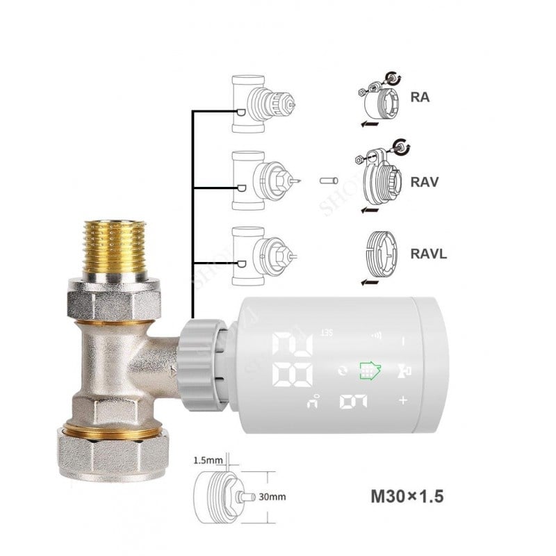 Cap Termostat Inteligent Calorifer Techstar® HY368, Smart, Ecran LED, Protocol ZigBee, Pentru Radiator, Cu Programare, Aplicatie Mobil, Adaptoare Incluse, Smart home