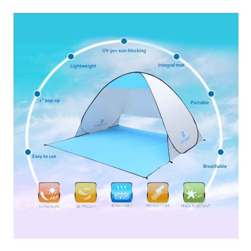 Cortul pentru plajă argintiu anti-UV tip pop-up este o alegere excelentă pentru cei care doresc să se bucure de soare fără a fi expuși direct razelor UV. Designul său inovator permite o deschidere rapidă, ceea ce îl face ideal pentru utilizare pe plajă sau în camping. Cu o capacitate de 2 persoane, acest cort oferă un refugiu confortabil și răcoros în zilele călduroase de vară.
