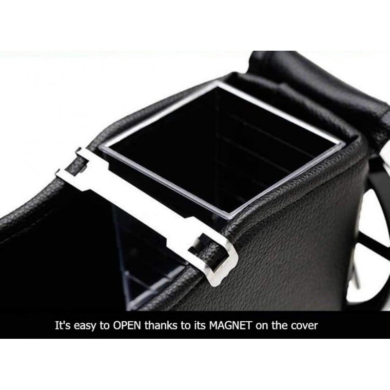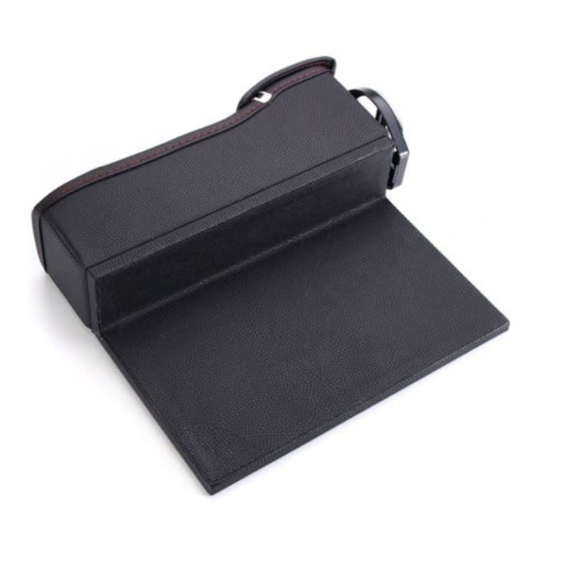 Specificatii : Tip material: piele Greutatet : 869g Inaltime : 7cm Latime : 26cm Lungime : 23.5cm Culoare : Negru Poate fi folosita efectiv in partea dreapta a scaunului pentru a umple golul si a beneficia integral de depozitarea obiectelor mici cum ar fi: c arduri, telefoane, cd-uri, chei, monede, notite, etc... Desigul este unul de exceptie, fin la atingere, nu afecteaza scaunul atunci cand este miscat in fata sau in spate. Inauntrul cutiei este o suprafata mai dura pentru a nu provoca alunecarea obiectelor. Materialul din plastic al suportului de pahar poate fi compresat pentru a salva spatiu. Cutia se poate adapta majoritatii vehiculelor si se curata foarte usor folosind doar apa.