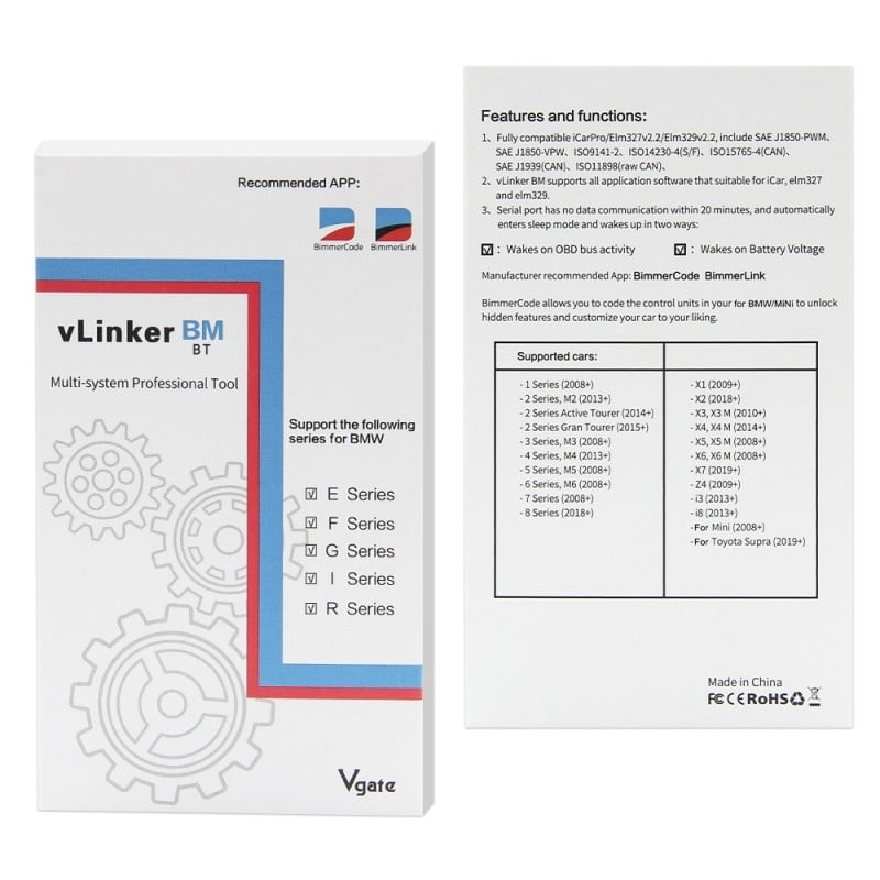 Stare in timp real: Afiseaza la timp consumul de combustibil si alte informatii de conducere, reduce costurile masinii Monitorizare Date: inregistrati kilometrajul de conducere, consumul de combustibil, costurile de ulei, viteza medie, consumul mediu de combustibil, costurile de timp si asa mai departe Evaluare stil de conducere: grad de consum de combustibil, grad de conducere si alte evaluari multiple Avertisment auto: Temperatura ridicata a apei, conducere la oboseala, avertizare de viteza si asa mai departe, mecanismul de avertizare multipla asigura siguranta dvs. Examinarea vehiculului: o examinare pentru masina iubita, prin vizualizarea codului de eroare, va poate anunta de pericolului ascuns din timp Raportul auto simplu si usor de inteles: ofera o varietate de moduri de afisare a informatiilor despre vehicule grafice, digitale, bazate pe text, inclusiv functia de afisare HUD nocturna, cadran analogic vizual si alt mod de afisare intuitiv USART Data Buffer: Permite un buffer de pana la 2K bytes, si o latime a benzii de 230,4Kbps. Acest lucru permite un trafic mai rapid, mai precis si cu mai multe date. Protocol de transmisie TP - Permite o conetiune wireless securizata Mod Economisire Baterie - Dispozitivul are un cosum de doar 51mA in functiune si numai 3mA in Standby + Functie automata de intrare in Standby cand sesizeaza ca masina este oprita. Compatibilitate: Compatibil cu orice aplicatie terta. Poti folosi aplicatia favorita cu Vgate VLinker. Dispozitivul este complet compatibil cu ELM327 si ELM329 Proiectat sa reziste: Dispozitivul are integrat protectii pentru voltaj scazut sau ridicat, tensiune slaba sau ridicata, temperatura Versiunea PROFESIONALA a lui iCAR PRO: Special conceput pentru a permite codarea tip "long coding" si transmiterea datelor mari catre autoturism Parametrii: Bluetooth OS Compatibil: Android Voltage operare: 9V~36V Curent Operare: 51mA Curent Stand-By: 3mA Temperatura de operare: -40℃~85℃ Umiditate: <60% Protocoale OBDII: SAE J1850 PWM SAE J1850 VPW ISO 9141-2 ISO14230-4 KWP (5 baud init, 10.4 Kbaud) ISO14230-4 KWP (fast init, 10.4 Kbaud) ISO15765-4 CAN SAE J1939 CAN ISO11898 RAW CAN Descrierea software-ului: Permite utilizarea BimmerLink si BimmerCode - Atentie software'ul poate percepe anumite taxe pentru utilizarea anumitor functii avansate ale aplicatiei. Iar autorul aplicatiei poate oricand modifica tarifele si functiile aplicatiei. Dispozitivul VLinker permite totusi folosirea aplicatiei BimmerCode, o caracteritica pe care OBD'urile obisnuite nu permit. De asemenea se poate opta pentru folosirea oricarei alte aplicatii si permite citirea si scriera de informatii atata timp cat aplicatia terta permite acest lucru. Caracteristici software BimmerLink: Programul poate efectua urmatoarele operatii: Activare Functii Resetare Module Telecomanda Regenerare DPF Tester Baterie Progamare Baterie Controlare Flaps Evacuare Modificare ASD - Active Sound Design Data Logging Cititi diagnosticul de eroare (Baza de date are peste 3000 de definitii generice de cod) Stergeti codul de eroare si opriti MIL-ul („Verifica motorul”) Afiseaza datele senzorilor curente, cuprinzand: Revolutii ale motorului pe minut (RPM) Valoarea de sarcina calculata Temperatura agentului de racire Starea sistemului de combustibil Viteza Situatia pe termen scurt a combustibilului Situatia pe termen lung a combustibilului Presiunea galeriei de admisie Timp de avansare prin injectare Temperatura aerului de admisie Debitul de aer Pozitia de acceleratie absoluta Tensiunea de detectare a oxigenului asociata cu starea de combustibil pe termen scurt Starea sistemului de combustibil Presiunea de combustibil Monitorizarea consumului de combustibil si multe alte date ...... Software Compatibil: Windows: ScanMaster-ELM, ScanTool.net, PCMSCAN etc Android: Torque_Pro, DashCommand, EOBD etc IOS: DashCommand, EOBD etc Torque, DashCommand, OBD Car Doctor, Auto Doctor, Mini OBDII, EOBD etc. Compatibil cu: BMW SERIA 1 F20, F21 BMW SERIA 2 F22, F23, F87, ACTIVE TOURER F45, GRAN TOURER F46 BMW SERIA 3 F30, F31, F34, F35, F80 BMW SERIA 4 F32, F33, F36, F82, F83 BMW SERIA 5 F07, F10, F11, F18, F90, G30, G31 BMW SERIA 6 F06, F12, F13 BMW SERIA 7 F01, F02, F03, F04 BMW X1 F48 BMW X2 F39 BMW X3 F25, G01 BMW X4 F26 BMW X5 F15, F85 BMW X6 F16, F86 BMW I3 BMW I8 MINI F54, F55, F56, F57, F60 + ALTELE
