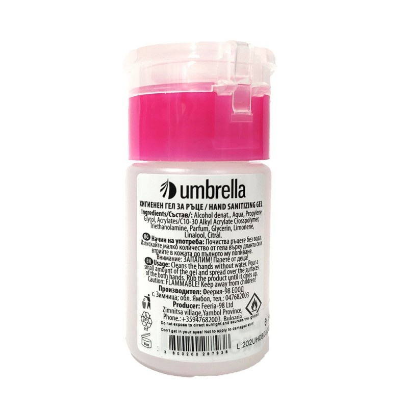 Gel de Igienizant cu Pompita pentru maini, Umbrella, 75ml, cu Alcool, Antibacterian, Smart home