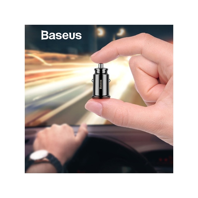 Incarcator Auto Premium Baseus Mini V3, Negru, Ultra Compact, Dual USB, 3,1A, 15,5W, Auto - Moto