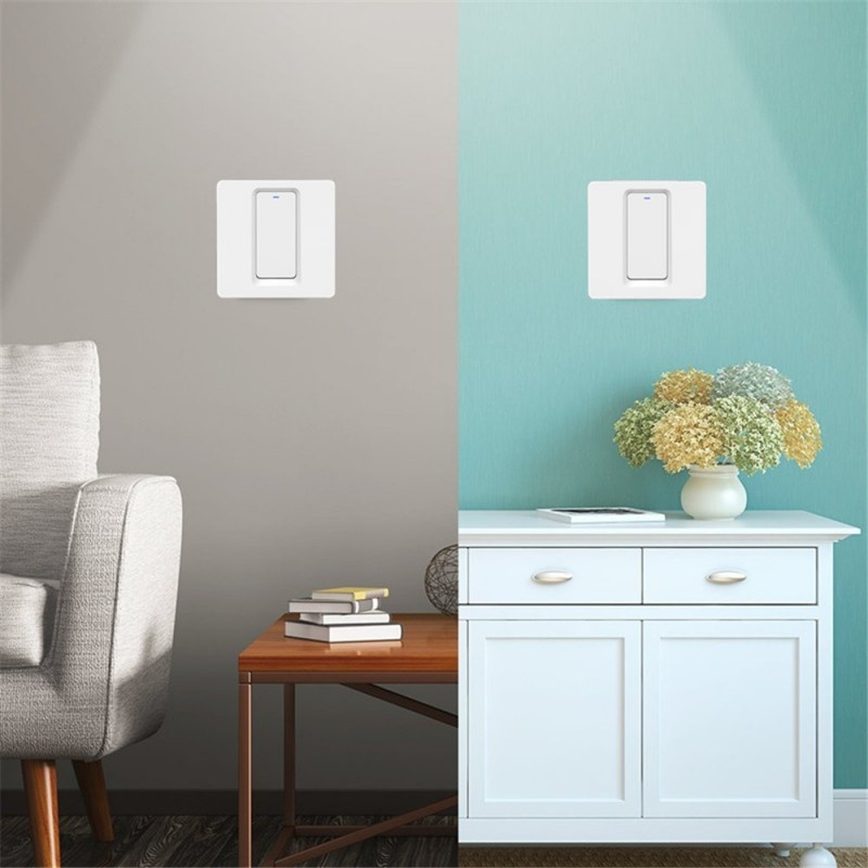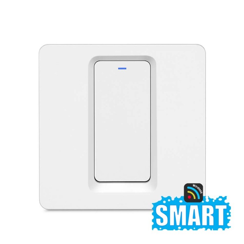 Intrerupator Smart Techstar®, Wireless 2.4GHz, Button cu Revenire, Design Classic, Iluminare LED, 1 Faza, cu NUL, Alb, Intrerupatoare