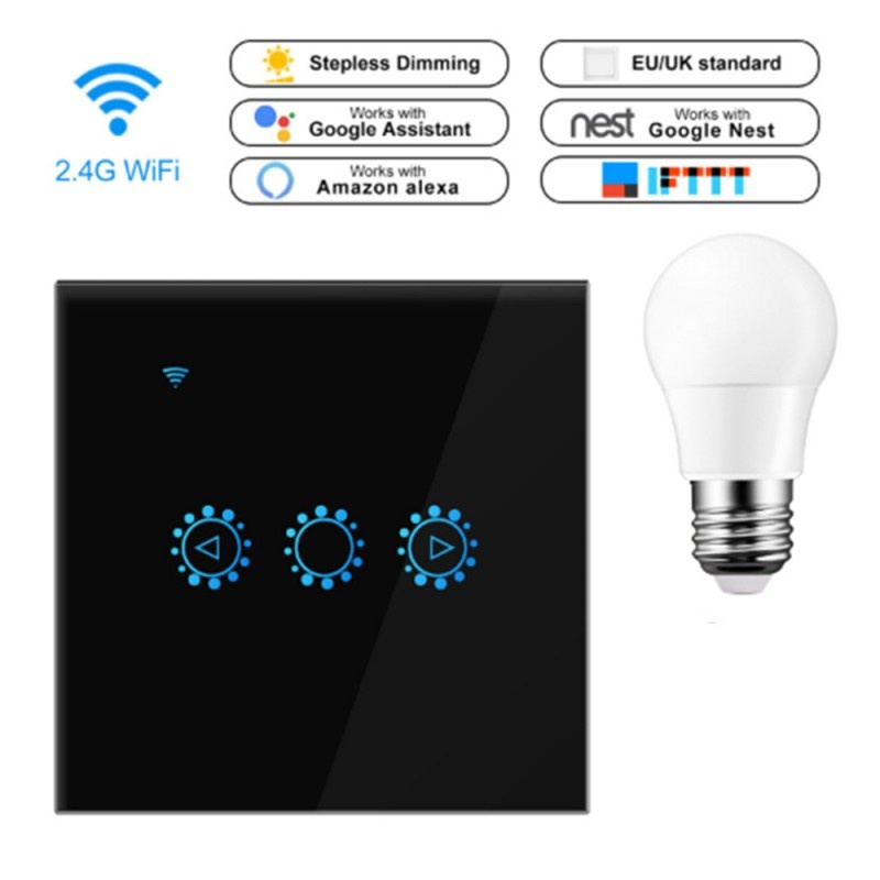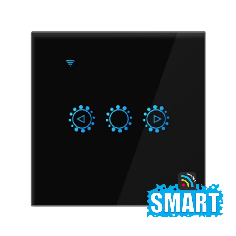 Intrerupator Smart Touch Techstar®, Wireless 2.4GHz, Dimmer, Sticla Securizata, Design Modern, Iluminare LED, 1 Faza, cu NUL, Negru, Intrerupatoare