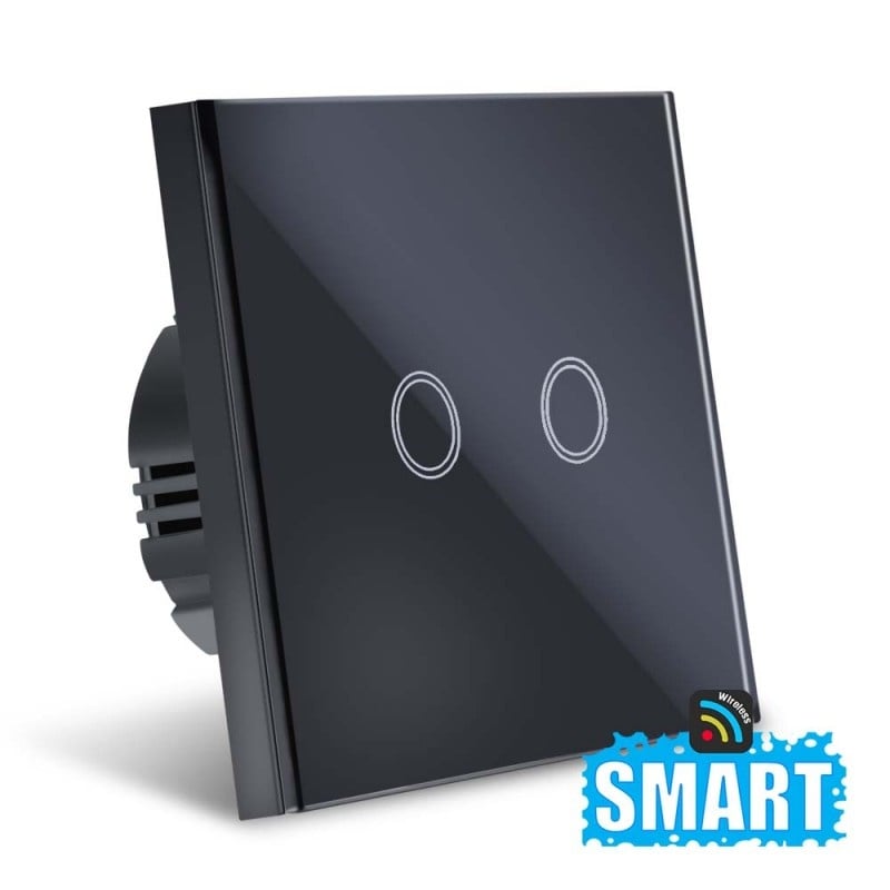 Intrerupator Smart Touch Techstar®, Wireless 2.4GHz, Sticla Securizata, Design Modern, Iluminare LED, 2 Faze, Negru, Intrerupatoare