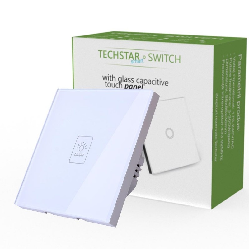Intrerupator Touch Techstar® TG02, Sticla Securizata, Design Modern, Iluminare LED, 1 Faza, Alb, Intrerupatoare