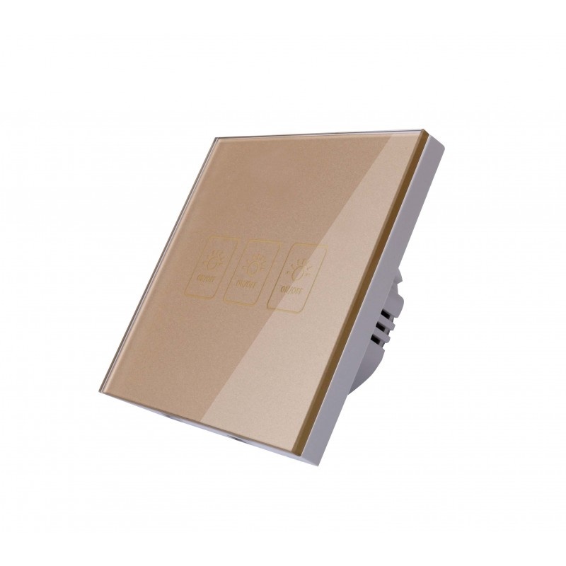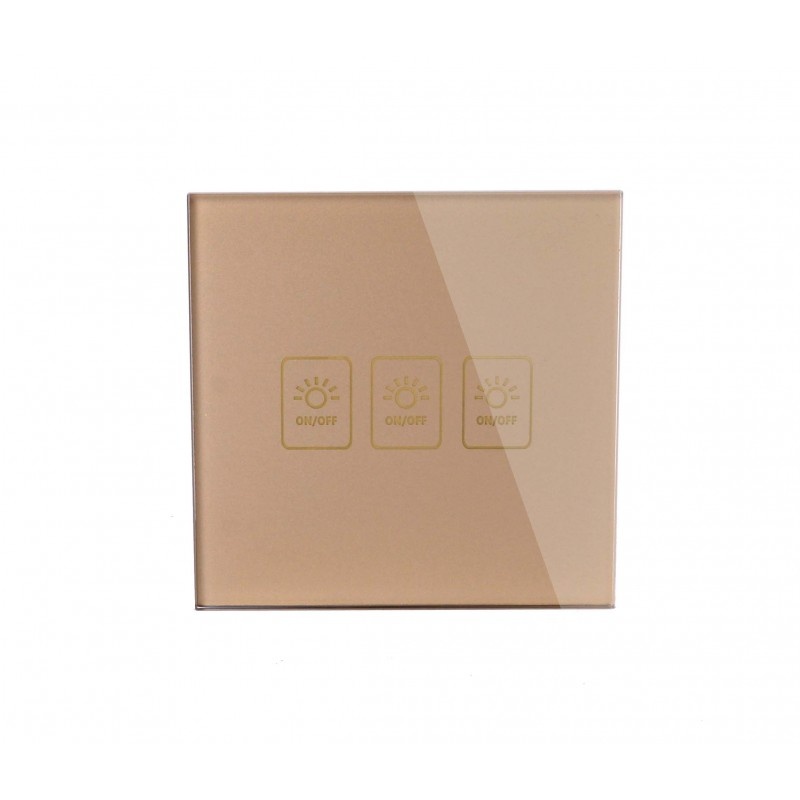 Intrerupator Touch Techstar® TG02, Sticla Securizata, Design Modern, Iluminare LED, 3 Faze, Auriu, Intrerupatoare
