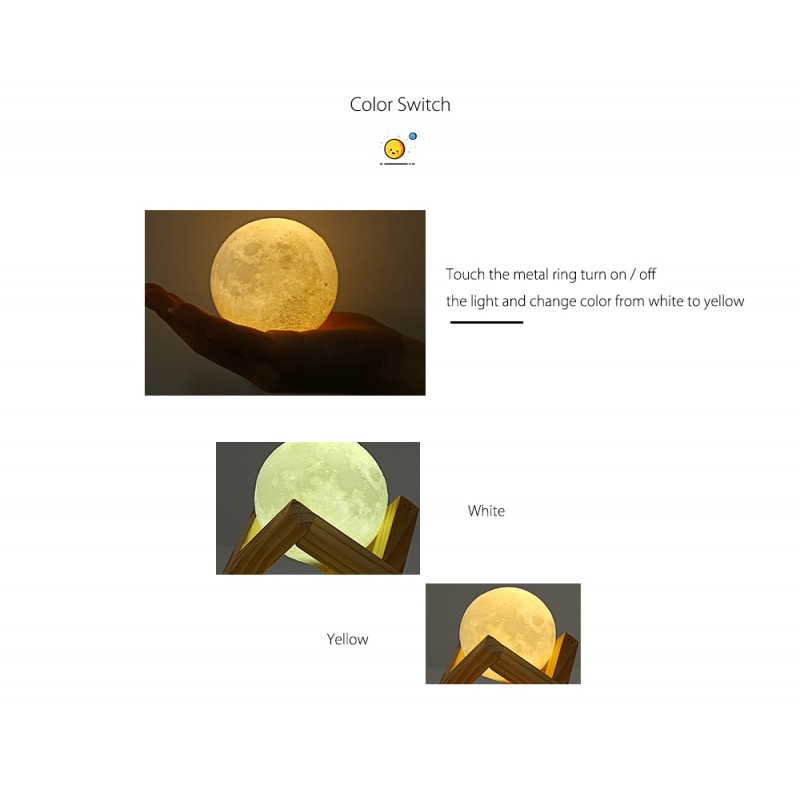Lampa LED în formă de lună plină este un accesoriu decorativ și funcțional, ideal pentru orice interior. Cu un diametru de 8 cm, aceasta aduce o notă de magie și confort în orice cameră. Este perfectă pentru a crea o atmosferă relaxantă, fie că este utilizată în dormitor, living sau birou. Designul său elegant și modern o face să se integreze ușor în diverse stiluri de decor.