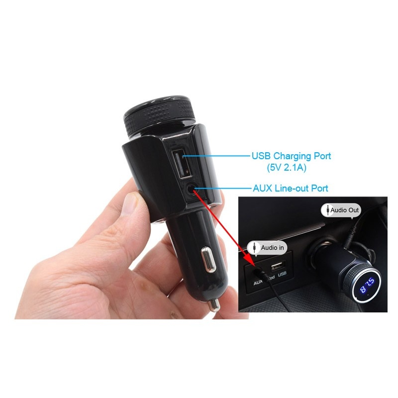 Modulator Auto T18 bluetooth MP3 Player are incorporat un modul bluetooth de inalta performanta si MP3 player decoder chip. Caracteristici : 1. Suporta Bluetooth hands-free datorita sistemului cu microfon incorporat. 2. Tehnologia de reducere a zgomotului de fundal datorita CVC Tehnology pentru a crea un sunet de inalta calitate full duplex 3. Suporta functia de mobil A2DP. Muzica va fi redata automata atunci cand mobilul se conecteaza cu dispozitivul. 4. Auto Pairing Bluetooth atunci cand porniti dispozitivul. 5. Suporta Micro SD Card ( 32GB Maxim ) 6. T18 va contine incarcator auto, 1 x Port USB 5v 2.1A, pentru a incarca diferitele gadgeturi. Greutate: 60g Culoare: Negru Specificatii: Bluetooth version: V4.1 Frequency: 2.402-2.480GHz Sensitivity: -42db +/-3db 360 Voltage: 5V +/-0.5 Working current: 45mA(max) Standby current: 25mA(max) Effective distance: 5m RF output: 4dBm Frecventa : FM Frequency: 87.5-108.0MHz Transmitted power: 87 dBuv/107dBuv Effective distance: 2m Pachetul Include : 1 x T18 Car FM Transmitter 1 x AUX Cable 1 x Manual de utilizare