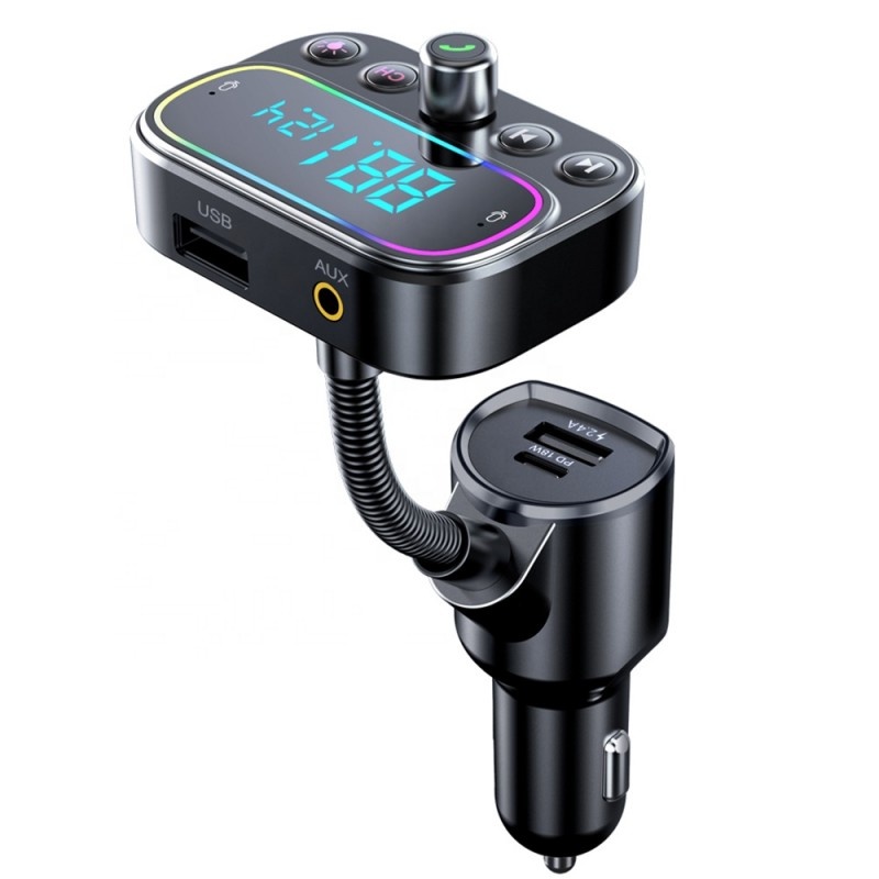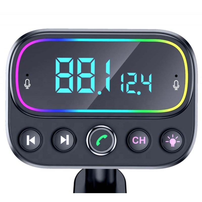 Modulator FM Techstar® T67, Bluetooth 5.0, Microfon Dual, Voltaj Baterie, USB, 18W PD Type C, MicroSD, AUX, RGB, Auto - Moto