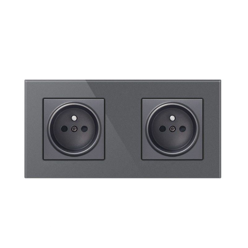 Priza Techstar® Crystal TS2, Dubla, Sticla Securizata, Culoare Gri Metal, 16A, Prize