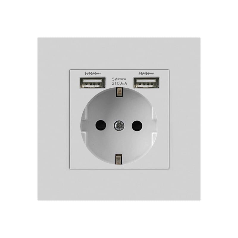 Priza Techstar® PCU1, Simpla, 2 x USB, 2.1 A, Culoare Alb, Policarbonat, 16A, Prize