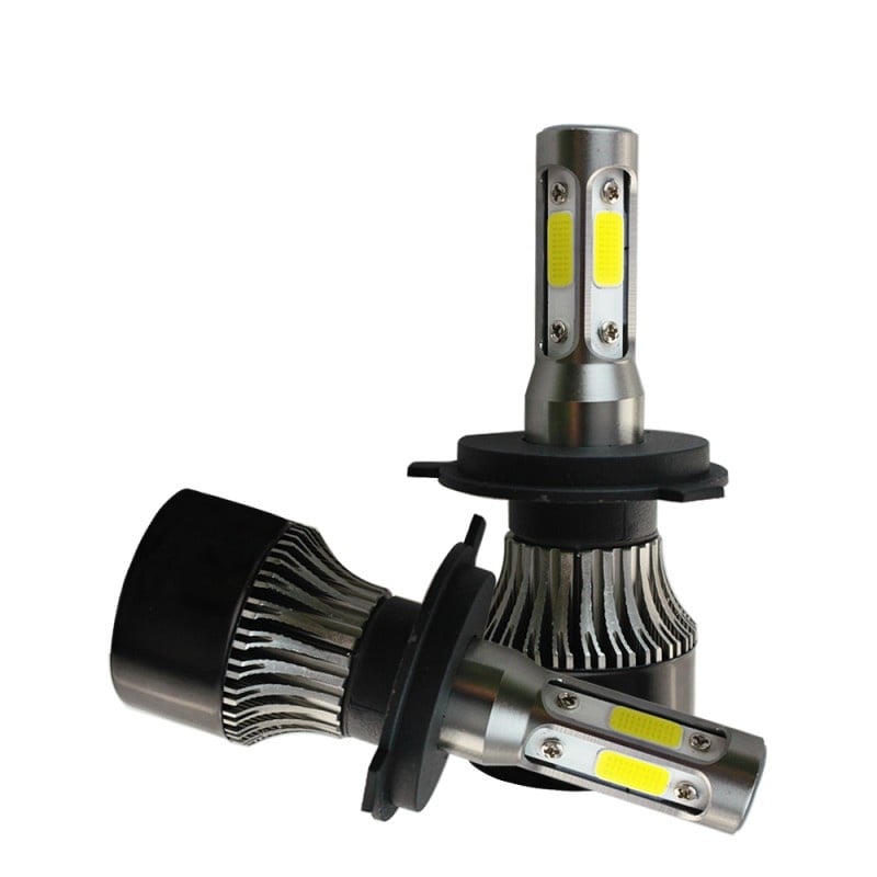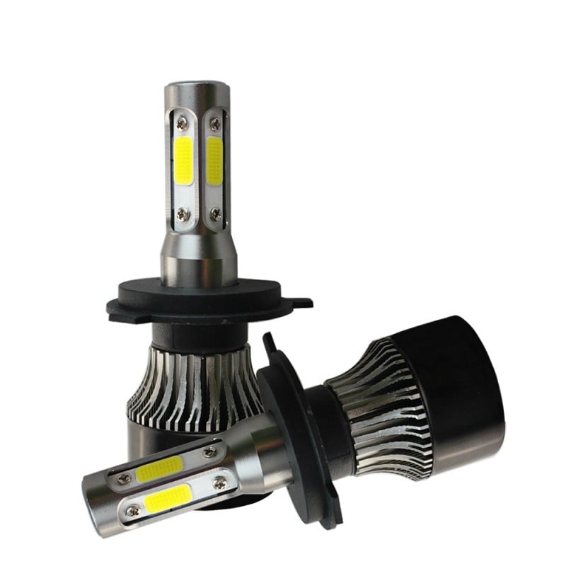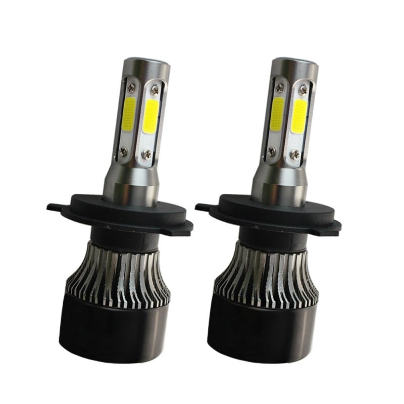 Set 2 LED-uri Auto Techstar® S4, H4, 40w, 4000 Lumeni, 6500K, AUTO, 12-24 Volti, COB, Canbus, Radiator Aluminiu, Lumini LED auto