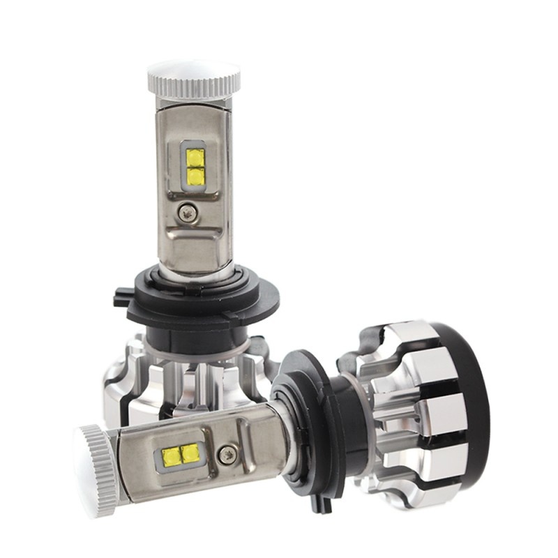 Set 2 LED-uri Auto Techstar® T1S, H7, 35w, 8000 Lumeni, 6000K, AUTO, 12-24 Volti, CREE, Canbus, Radiator Aluminiu, Lumini LED auto