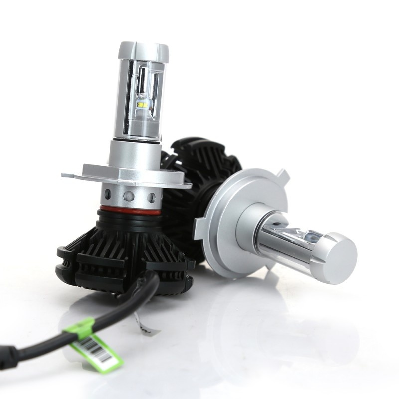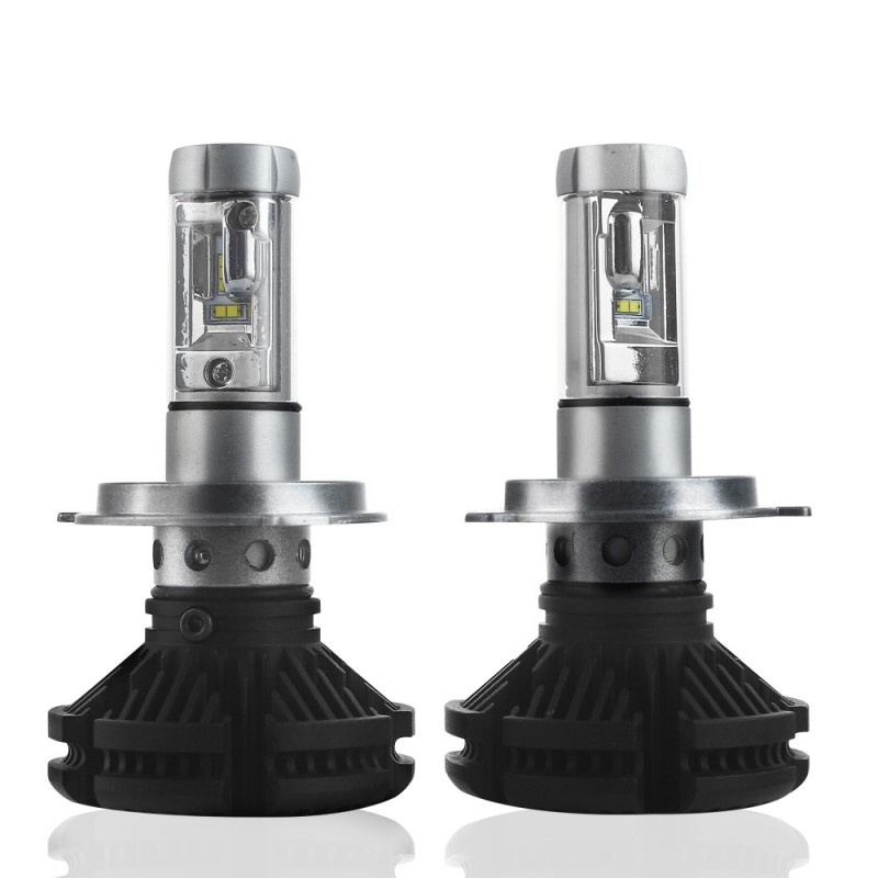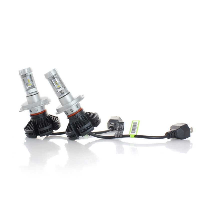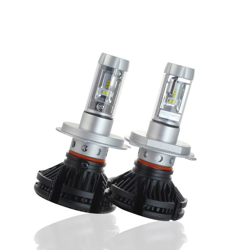Set 2 LED-uri Auto Techstar® X3, H4, 25w, 3000 Lumeni, 3000K/6500K/8000K, AUTO, 12-24 Volti, ZES, Canbus, Miez Cupru, Radiator Aluminiu, Lumini LED auto