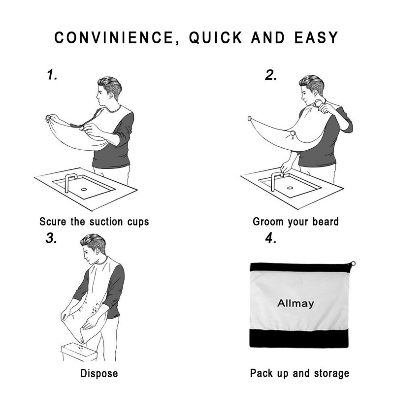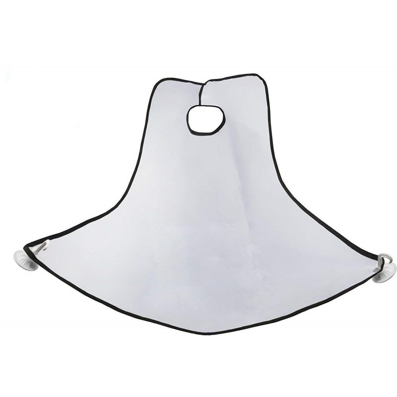 Ideal pentru un cadou: Fie ca este ziua tatalui sau cadou aniversar sau pur si simplu pentru tine, acesta va fi alegerea ideala pentru orice barbat. Se mai poate folosi chiar si la femei pentru taierea parului. Poti salva timp pretios dupa ce ai terminat de barbierit sau tuns par folosind acest sort. Pelerina de tuns barba tip suport, cu ventuze, ce se lipesc de oglinda pentru a evita raspandirea parului in incapere. Pelerina este realizata din material impermeabil de culoare alba. Ea poate fi utilizata acasa sau in saloanele de hairstyling, frizerii, barber shop-uri. Sistemul de prindere cu adeziv, textura antistatica, lejera si cele doua ventuze de prindere pe oglinda, o fac ideala pentru utilizarea frecventa si curatarea imediata prin scuturare. De acum iti poti tunde barba usor si rapid fara a-ti face griji ca vei umple baia de par! Marime: 120 x 75 x 0.05 cm