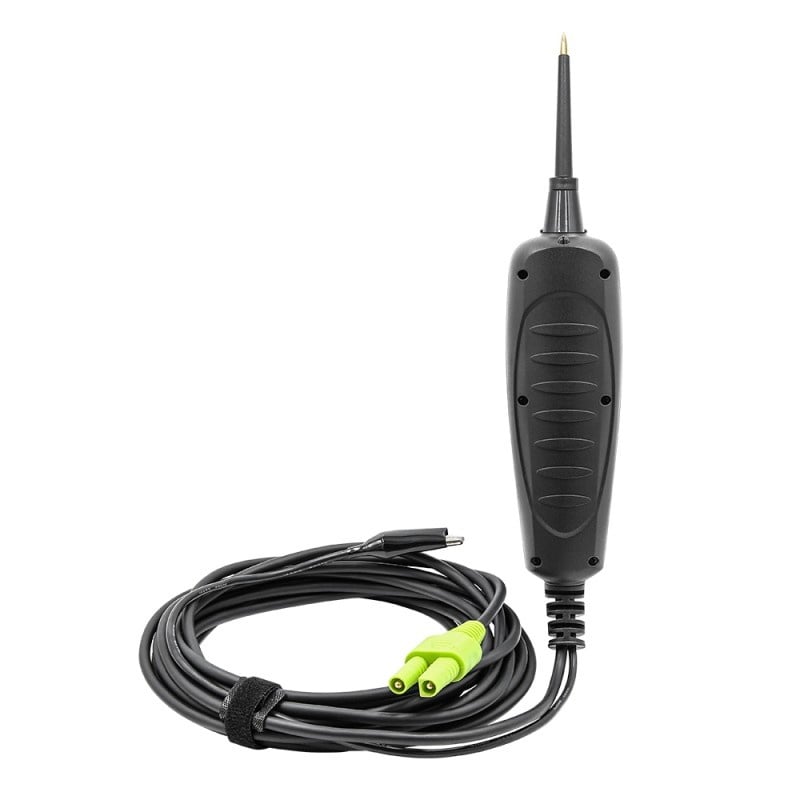 Testerul este alimentat fie de la baterie, fie de la priza auto de 12V, ceea ce îl face versatil pentru utilizare în diferite condiții. De asemenea, include un cablu prelungitor de 5m, ceea ce permite accesul ușor la zonele greu accesibile ale vehiculului.