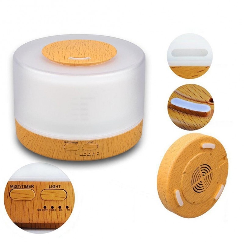 Umidificator Aer Ultrasonic Techstar® U70, Aromaterapie, Iluminare RGB, Portabil, Telecomanda, Rezervor 700ml, Stejar Deschis, Smart home